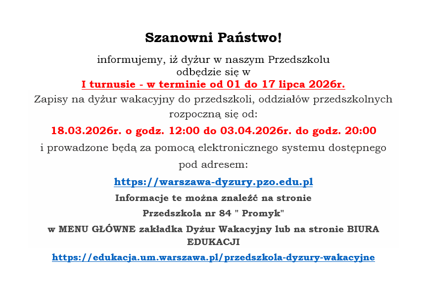 Informacje o dyżurach wakacyjnych - dostępne są na stronie (link):